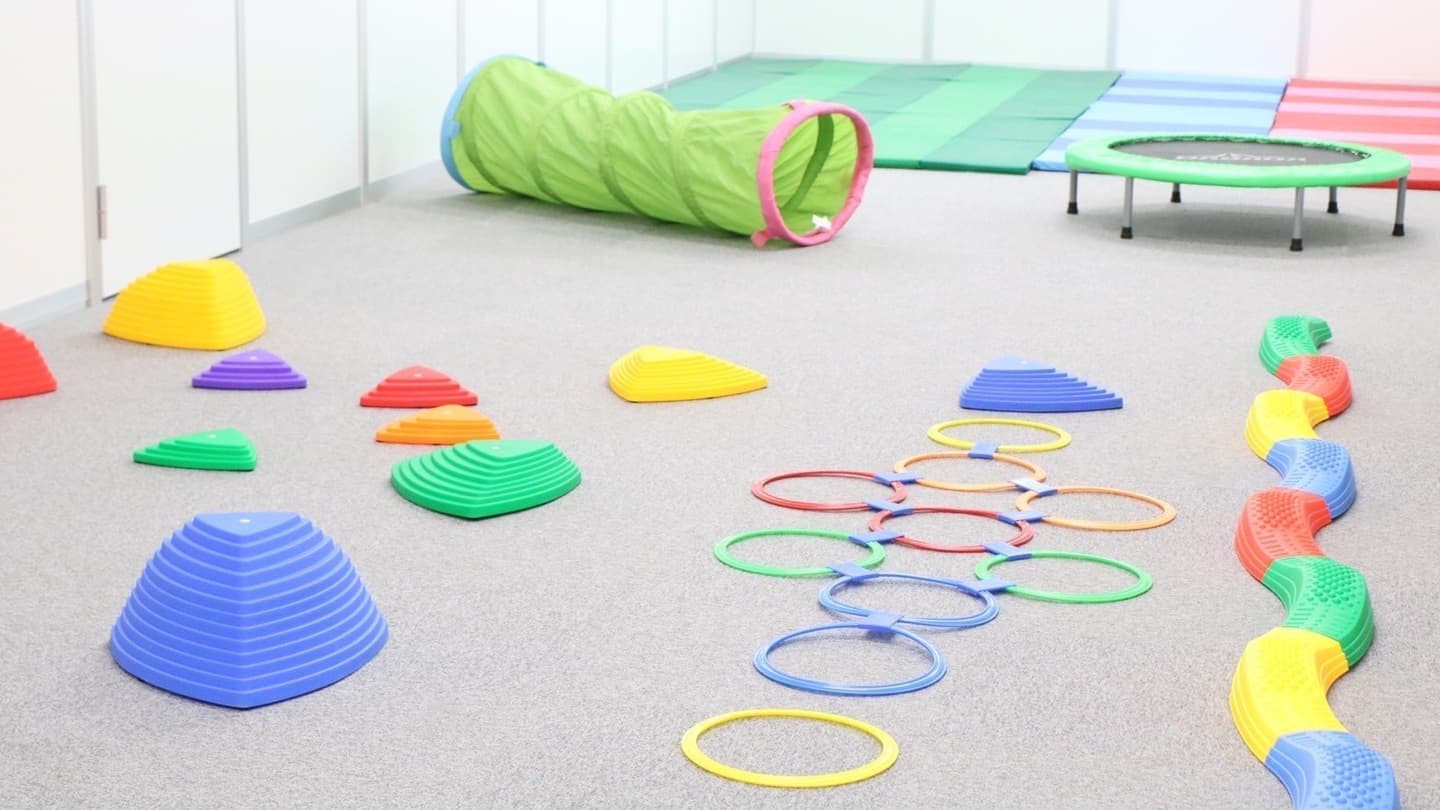 室内での平行棒、器械体操、マット練習、反復練習を行い、ADL動作をプログラムの中に入れて「遊びながらADL動作の反復練習で発達を促進させる」事を目的とし、本人の能力向上を図ります。